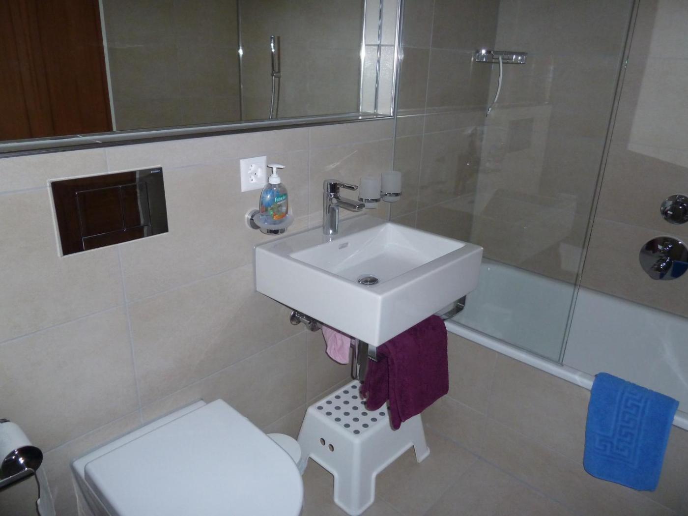 Three-Bedroom Apartment. This spacious apartment comes with a kitchen, a seating area, 3 separate bedrooms and 2 bathrooms with a bath and a shower. Meals can be prepared in the kitchen, which features a stovetop, a refrigerator, a dishwasher and an oven. Boasting a balcony with mountain views, this apartment also features a washing machine and a flat-screen TV with satellite channels. The unit has 6 beds.
