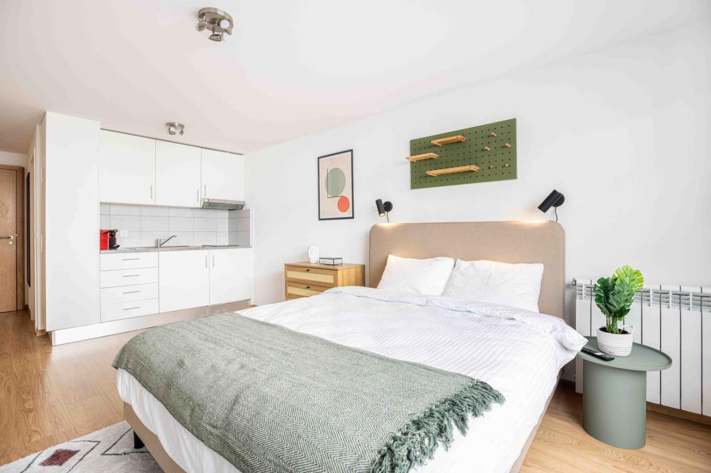 Deluxe Studio. The studio provides a coffee machine and a seating area, as well as a private bathroom featuring a bath or a shower. In the fully equipped kitchenette, guests will find a stovetop, a refrigerator, kitchenware and a toaster. This studio features a wardrobe, heating and a flat-screen TV. The unit offers 1 bed. ;