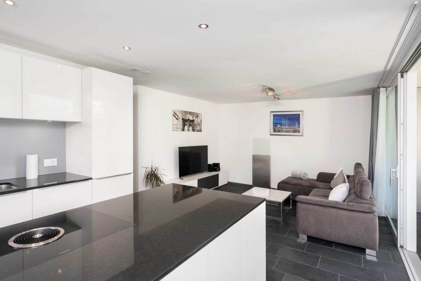 Two-Bedroom Apartment. This spacious apartment comes with 1 living room, 2 separate bedrooms and 2 bathrooms with a walk-in shower and a bath. The well-fitted kitchen has a stovetop, a refrigerator, a dishwasher and kitchenware. Boasting a terrace with garden views, this apartment also features a washing machine and a flat-screen TV. The unit has 2 beds.